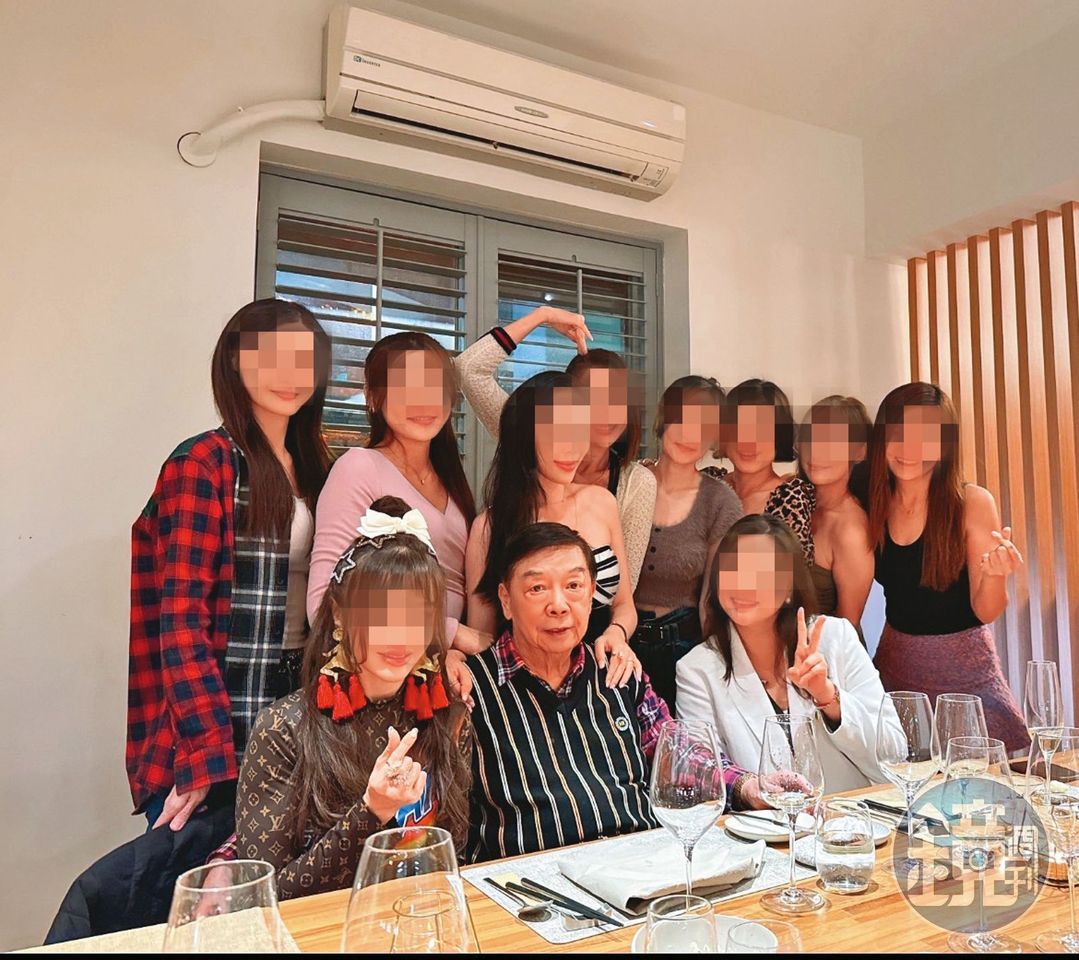 ▲富商王廣德(前排中)的飯局總是名媛環繞,也因此引發不少戲劇化的爭風吃醋。(圖/讀者提供/鏡週刊提供)