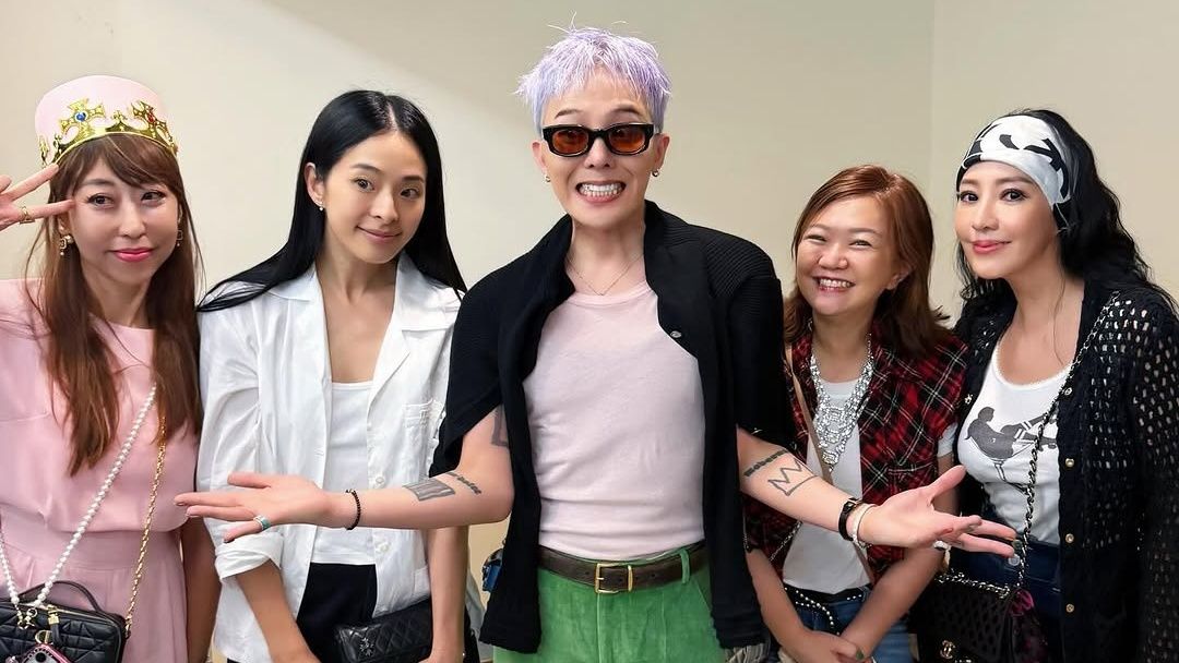 ▲關穎(右1)收到意外生日驚喜,後台合照GD(中)。(圖/翻攝自關穎IG)