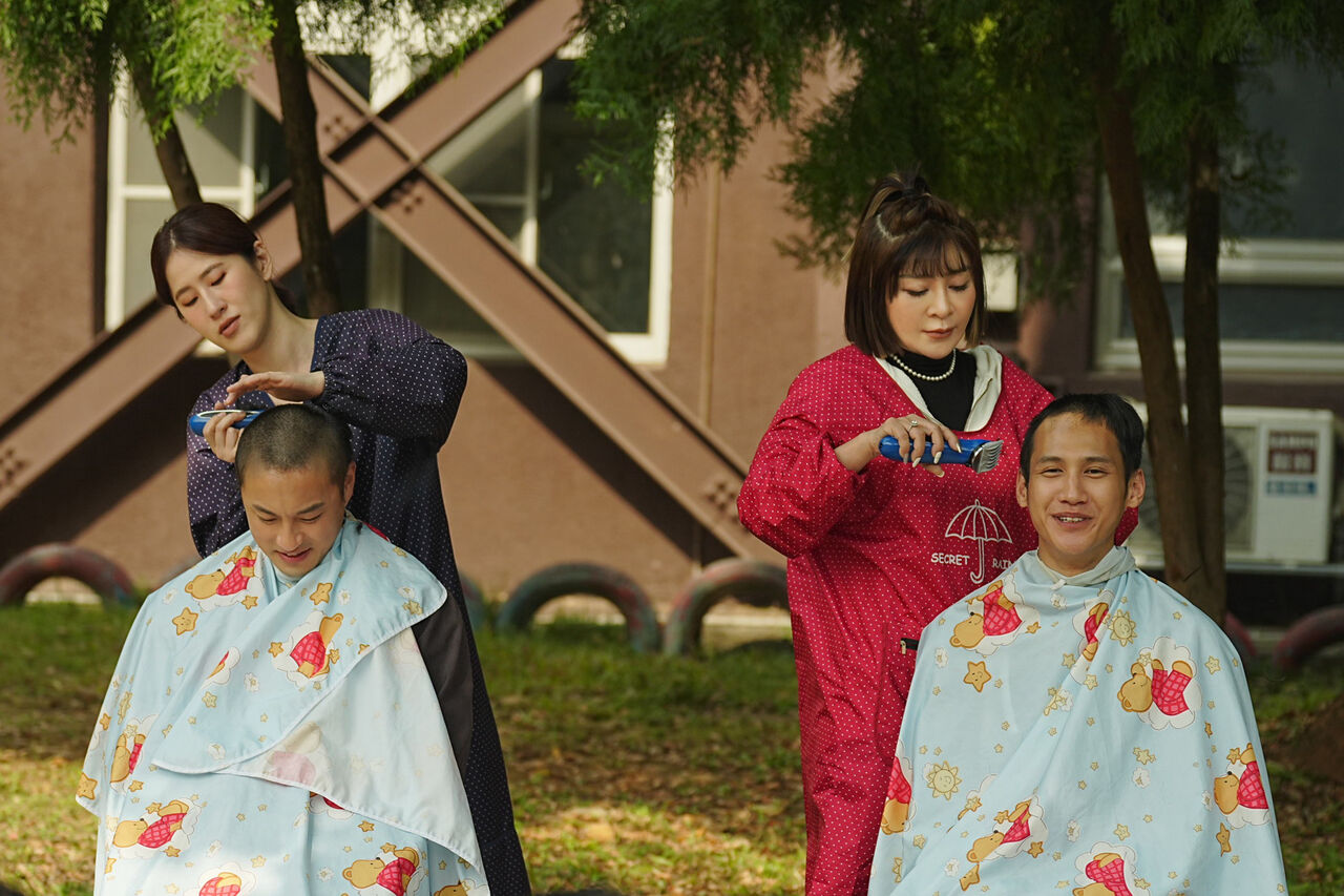而最早進入「軍旅模式」的孫綻早早完成準備,他表示:「我先把頭剃好,也看了很多軍教片和軍旅相關影片。」也特別感謝兩位「髮婆」:「彩樺姐和百白真的太專業、太用心,每個人剃完都帥出新高度!」