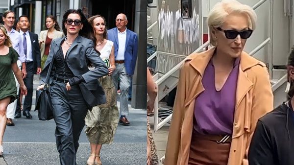 64歲的史丹利圖奇於7月23日(美國時間)在紐約現身,穿著炭灰色西裝外套搭配淺灰長褲,再度詮釋角色「奈傑爾(Nigel)」。同日,梅莉史翠普也以經典角色「米蘭達(Miranda)」的標誌性造型回歸,包括短白髮、卡其色風衣與鉛筆裙,優雅現身片場,顯現不減當年氣勢。