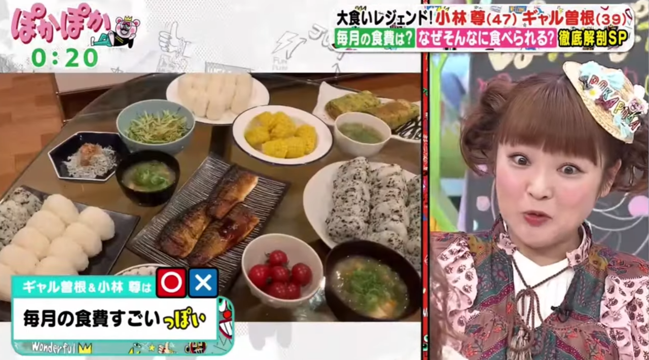 日本知名大胃王藝人「辣妹曽根」23日登上節目《暖呼呼》,與同為傳奇大胃王的小林尊同台暢聊,並大方公開自家驚人的食量與伙食日常。當主持人提到「每月伙食費應該很可怕吧?」她當場舉起「○」牌,認證家中確實開銷驚人。