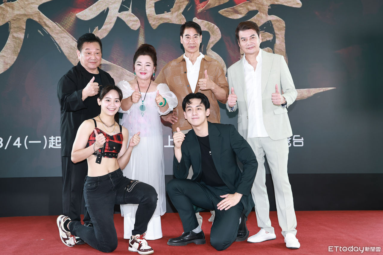 ▲白冰冰製作戲劇《天知道》,演員群胡子萱、葛兆恩、林義芳、翁家明和倪齊民,一同出席首映會。(圖/記者黃克翔攝)