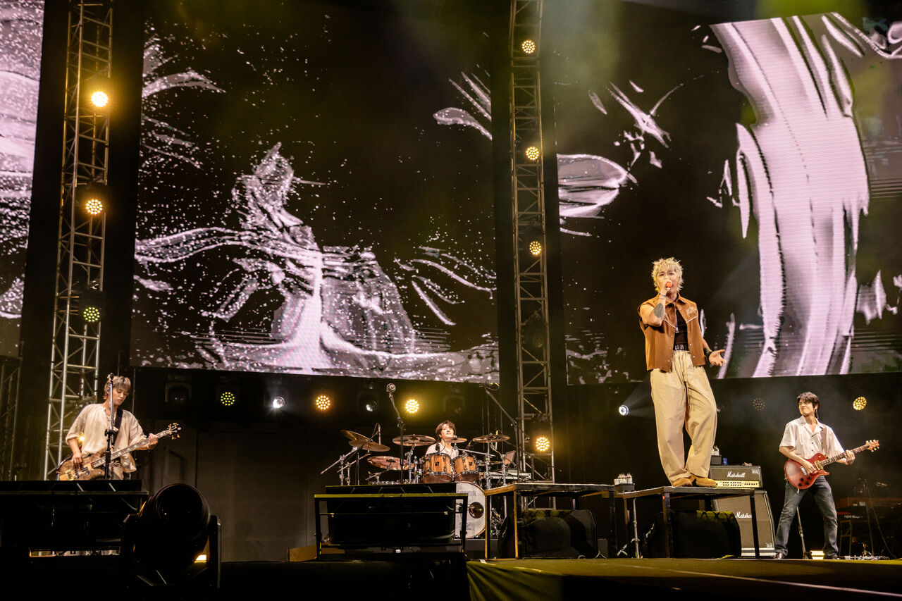 接著是韓流搖滾先鋒FTISLAND則以七月剛發行的新曲〈THUNDERSTORM〉震撼登場,這首描繪搖滾曲在李在真強勁紮實的貝斯節奏、崔敏煥爆發力十足的鼓聲,以及李洪基層層堆疊的情感嗓音中,融合出細膩與粗獷交織的強烈能量,帶來開場即沸騰的張力。隨後演出〈Theory of Happiness〉與〈Tears In Vain〉,接連展現FTISLAND成熟深刻的舞台控制力。