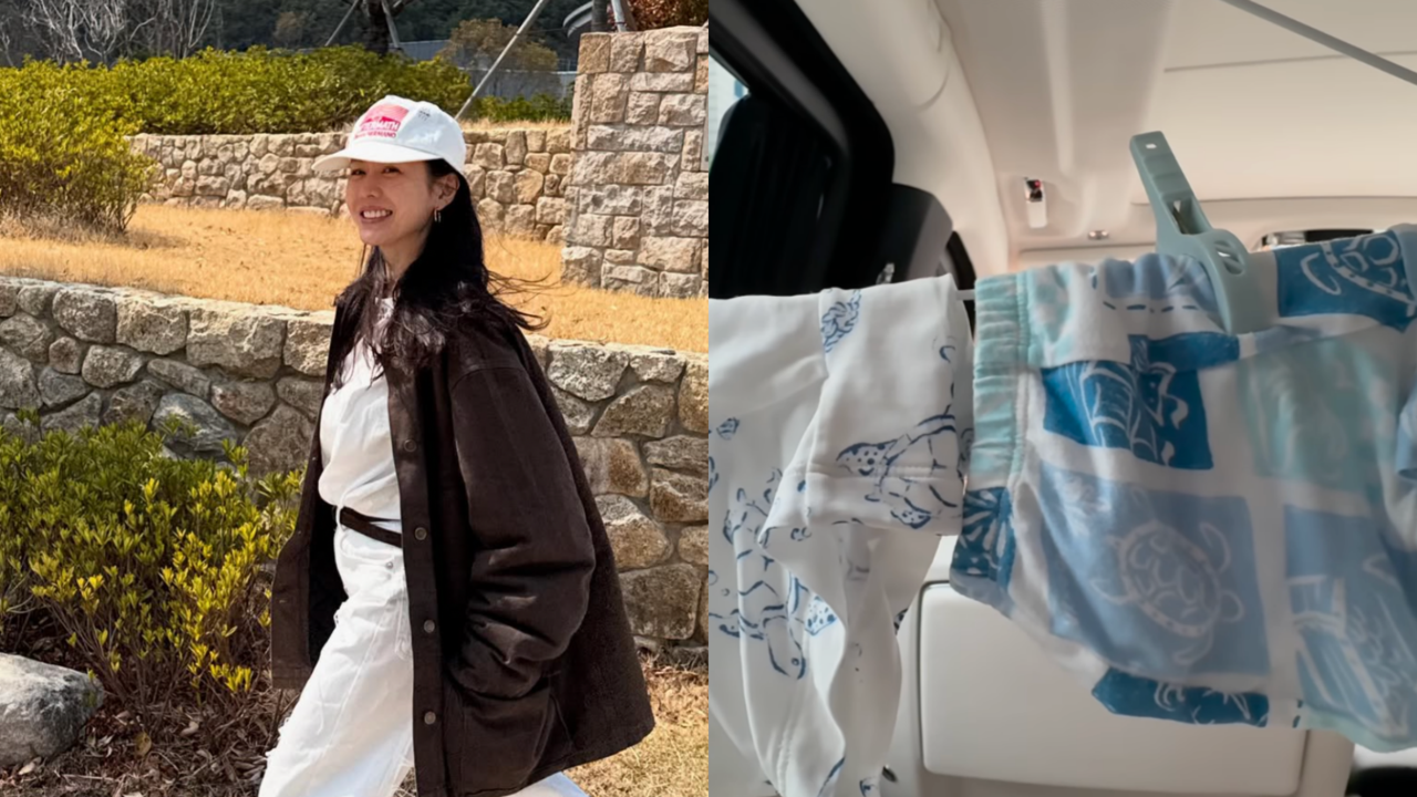 ▲▼孫藝真5日曬出兒子的內褲在車裡吹乾的育兒日常。(圖/翻攝自孫藝真IG)
