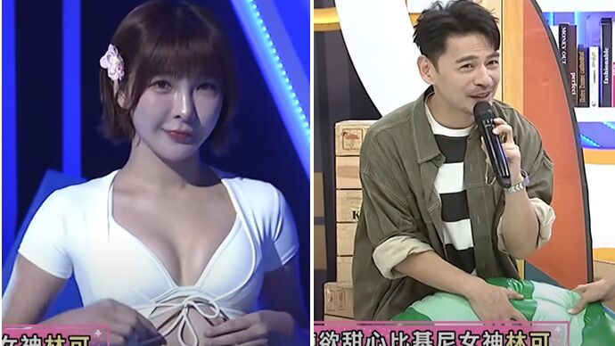 畫面中,可以看到林可本來穿著白色短外套,但出場時,便大膽地邊走邊脫,露出內搭的白色比基尼,「我今天帶來的是炸奶神器」,因為上圍沒有同場來賓短今來得豐滿,才決定穿這件泳衣,「讓自己的罩杯升一級!」