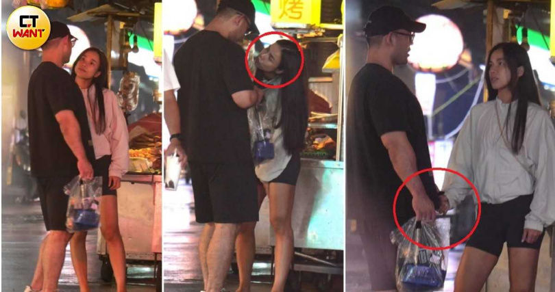 吃完甜品,小倆口走回燒烤攤,等候外帶食物的期間,林芯儀似乎情緒更加放鬆,對著KK擺出嘟嘴、撒嬌的可愛表情,有點索吻般地暗示,不過,男方的回應卻相對冷淡,雖然沒有大街啵啵的畫面,KK牽起林芯儀的手,儘管只有幾秒鐘便放掉,這段曖昧的互動,已足以證明兩人的關係不單純。