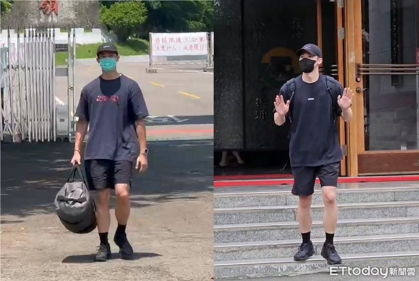 ▲對比去年9月6日放假走出營區門口(左,ETtoday資料照/記者白珈陽攝),許光漢今天退伍,穿著幾乎同一套服裝現身。(右圖/記者高堂堯攝)
