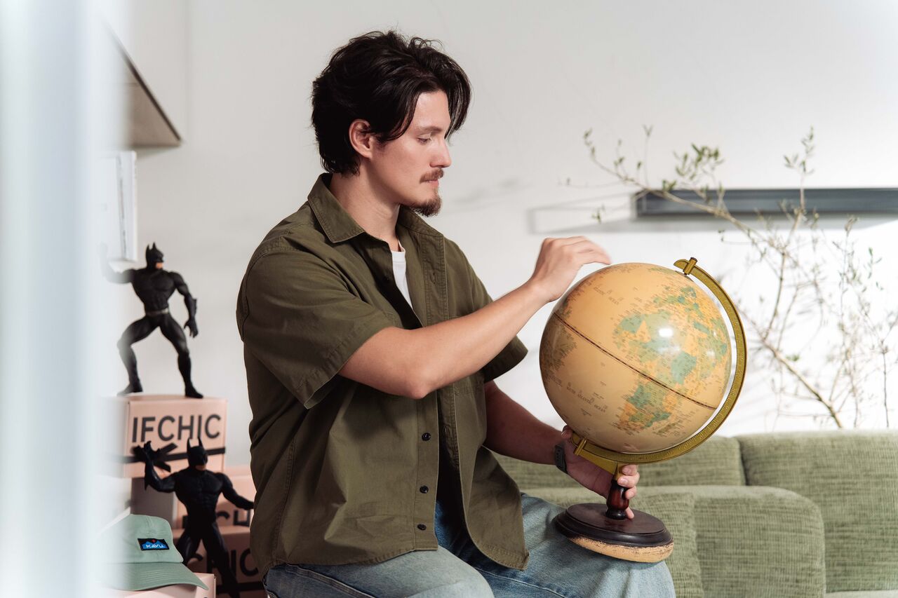 ▲周華健送地球儀,希望周厚安面對事物,凡事先了解再提問。(圖/IFCHIC提供)