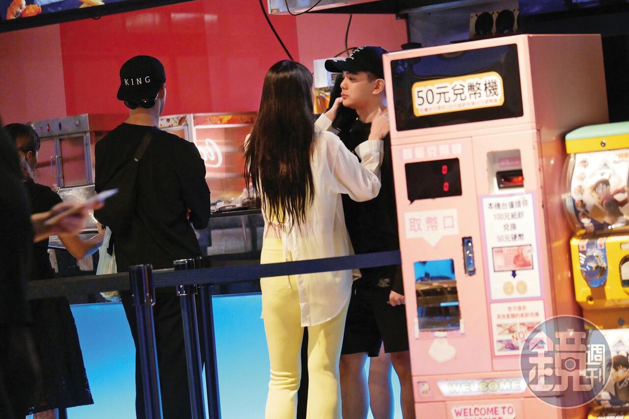 本月5日接近午夜時分,本刊直擊孫生與女友諶多芬相偕看電影,還有一位女性友人陪同。有趣的是,孫生與女友交往已超過2年,但當晚在美食街等待進場前,兩人似難忍情愫,先是女友對他調情摸胸,接著孫生也對著女友摸摸頭,兩人的情生意動好像剛交往一樣,當眾調情直到開放進場,才與友人往電影院內移動。