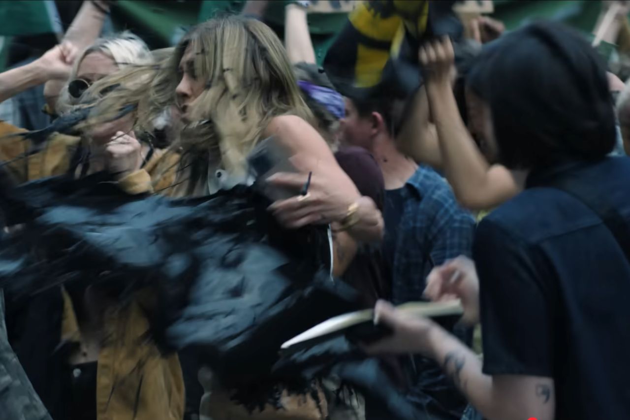 ▲珍妮佛安妮斯頓在《晨間直播秀》劇中被潑黑漆。(圖/翻攝自YouTube/Apple TV)