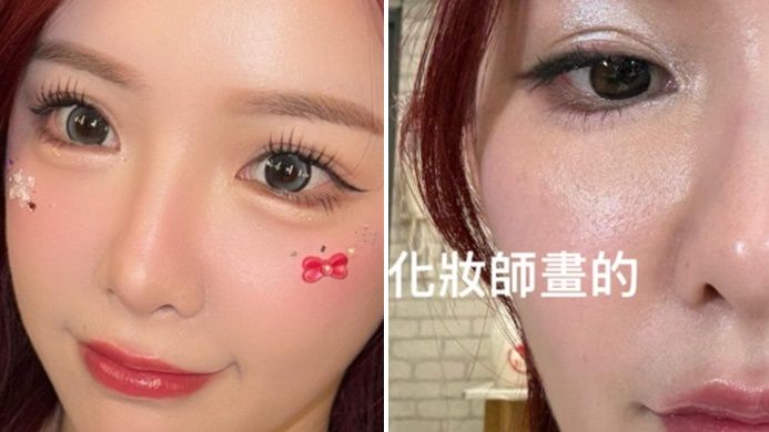 相比之下,由化妝師完成的妝容則有明顯差異,李恩菲的底妝變得偏薄,睫毛呈現的是濃密風格,眼妝與腮紅的層次較淡,呈現出截然不同的氛圍,連她本人自拍完一看都快認不出來「是誰」。