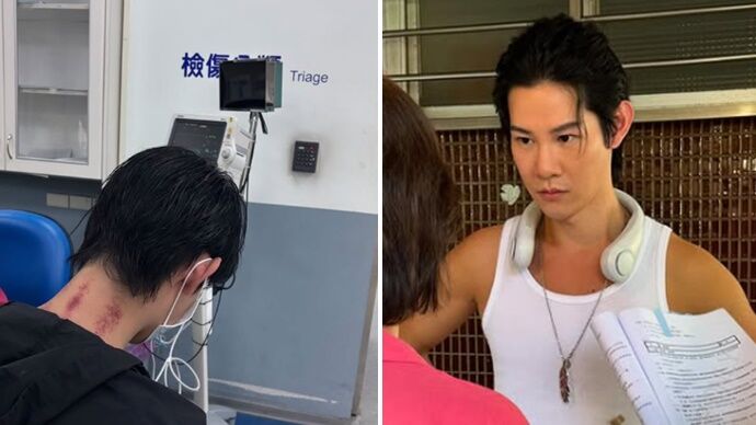 從醫院名稱推測,夏和熙26日是前往台南出外景,穿著黑色外套的他,坐在醫院檢傷區的椅子上,後頸部有兩條紅紫色的痕跡,光從背影都能感受到他疲憊不適的狀態。