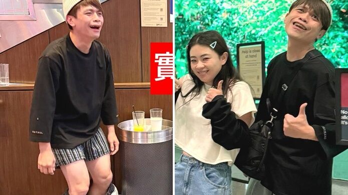 有趣的是,蔡阿嘎還拍了「我以為的賭場vs.實際上」的對比照,原本穿的淺灰色休閒長褲,但最後直接脫到膝蓋下,營造出「輸到脫褲」的效果。