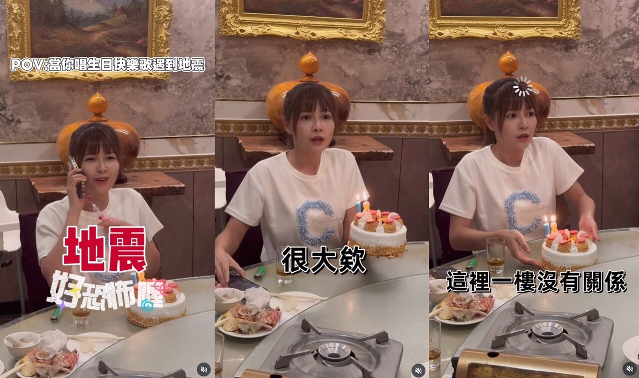 藝人謝京穎27日晚間歡慶生日時,恰逢宜蘭縣近海晚間9點11分發生芮氏規模6.0地震,她正捧著生日蛋糕準備吹蠟燭,眾人齊唱生日快樂歌,卻在瞬間強烈晃動中驚呼連連,意外讓生日派對成為驚心動魄的回憶。