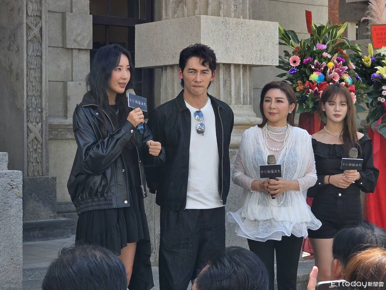 ▲隋棠(左起)、溫昇豪與王彩樺加上庭庭今天在台南出席記者會。(圖/記者葉文正攝)
