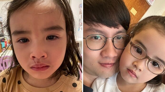 照片中,可以看到芝麻從鼻子下方到上唇之間有一道明顯的直線狀傷痕,呈現紫紅色,委屈神情讓人隔著螢幕都能感受到她的疼痛,爸爸張捷也坦承她「當下哭很慘」。