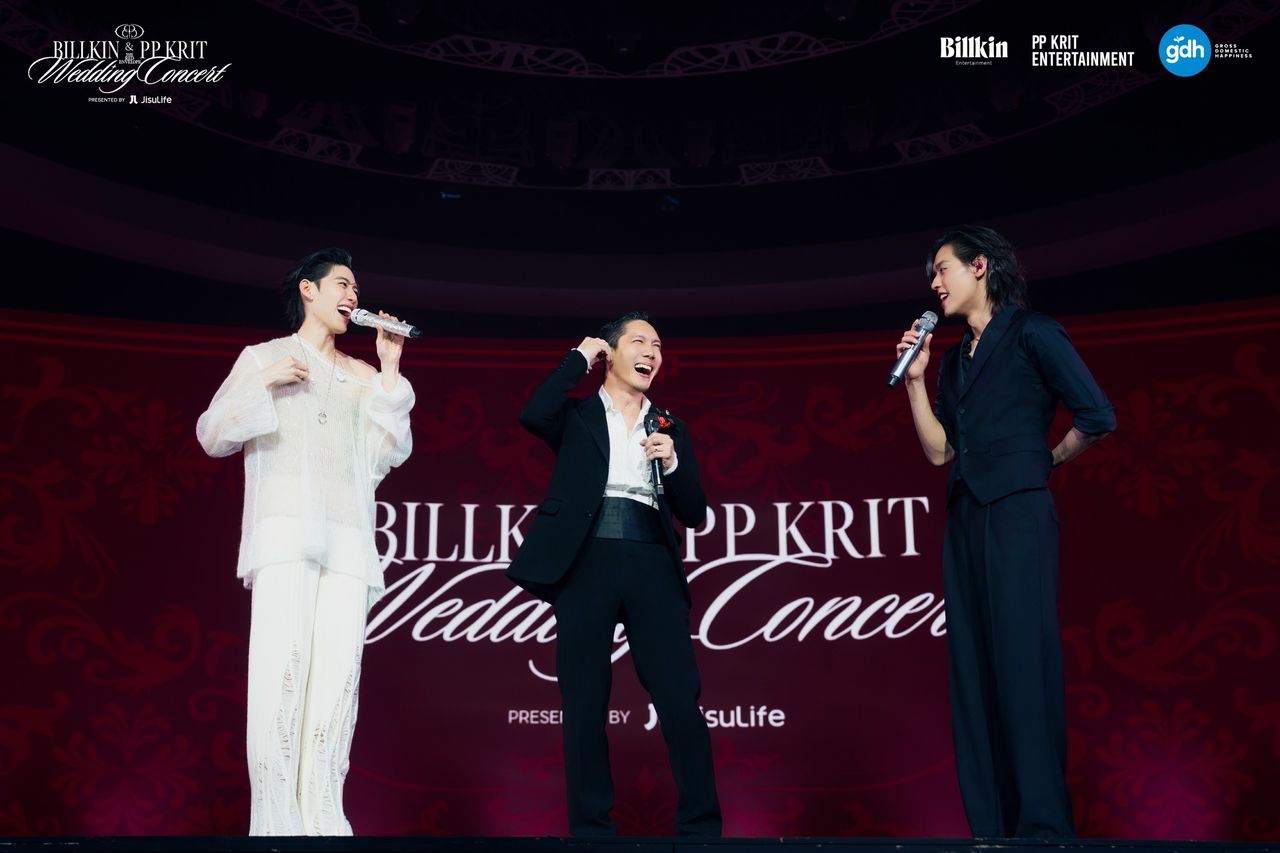 ▲Pup(中)先前到泰國人氣CP「BKPP」婚禮演唱會作客,妙語如珠笑翻眾人。(圖/翻攝自官方Facebook)