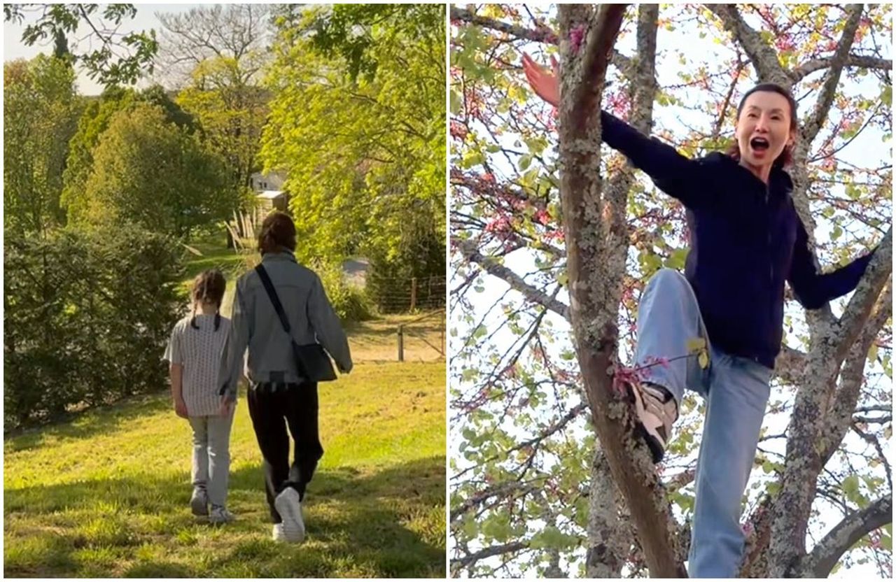 ▲張曼玉在波爾多爬樹,與小朋友在田園散步,相當愜意。(圖/翻攝小紅書)