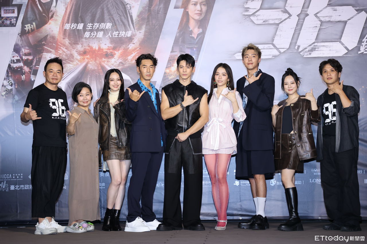 ▲《96分鐘》電影首映會,(左起)監製鄒介中、呂雪鳳、姚以緹、李李仁、林柏宏、宋芸樺、蔡凡熙、孔令元、導演洪子烜 。(圖/記者徐文彬攝)