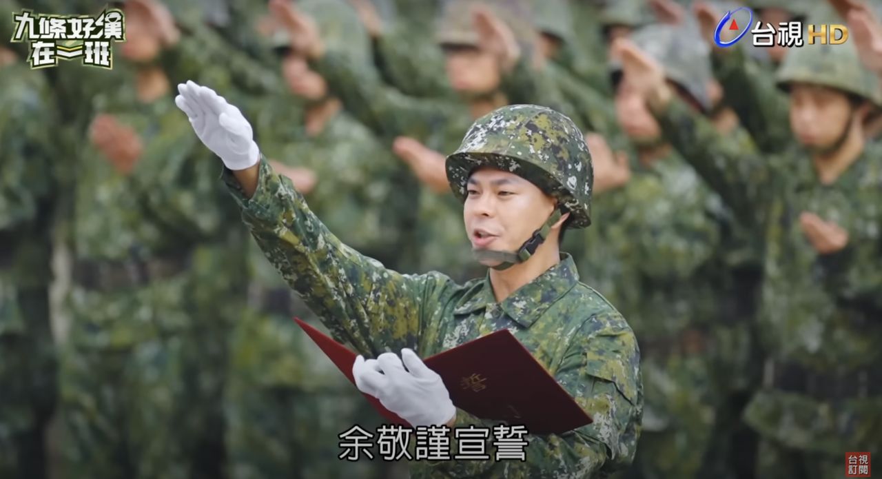 ▲孫綻在成功嶺代表新兵宣誓。(圖/台視提供)