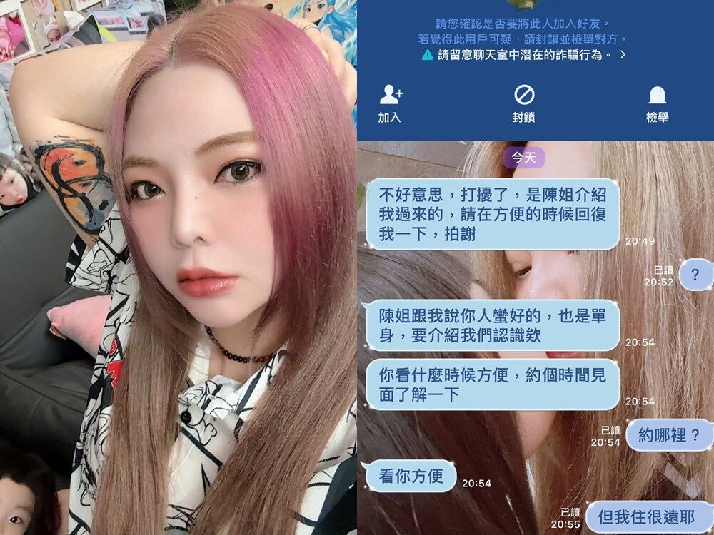 藝人小甜甜(張可昀)近日在社群平台公開多張對話截圖,揭露自己與詐騙集團對話的過程,提醒大眾提高警覺。對方更以「是陳姐介紹我過來的」,並積極邀約見面。她則將計就計與對方聊天,並說:「謝謝這位詐騙犯讓我聊我下輩子的夢想!」