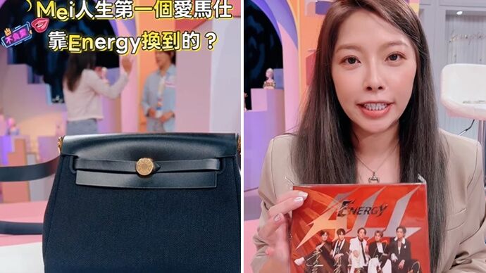Mei(邱馨葦)是Energy成員阿弟(蕭景鴻)的老婆,她最近在社群分享入手人生第一個愛馬仕包的經過,她直言這份緣分要感謝美國的好朋友,「我就看她背了這個包包,然後我就跟她說,欸,那個,我都沒有愛馬仕的包包。她就說真的嗎?我說妳可以讓我擁有第一顆嗎?」