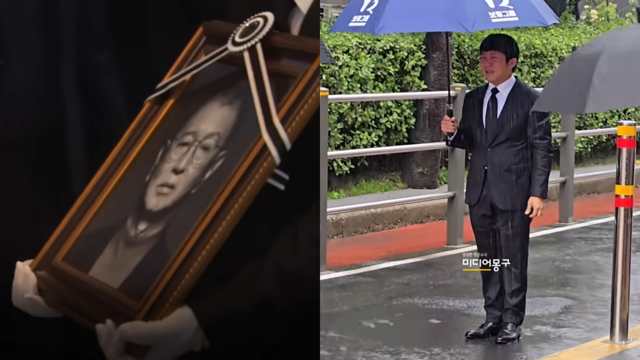 ▲曹世鎬雨中大哭送別師父最後一程。(圖/翻攝自mediamongu YouTube)