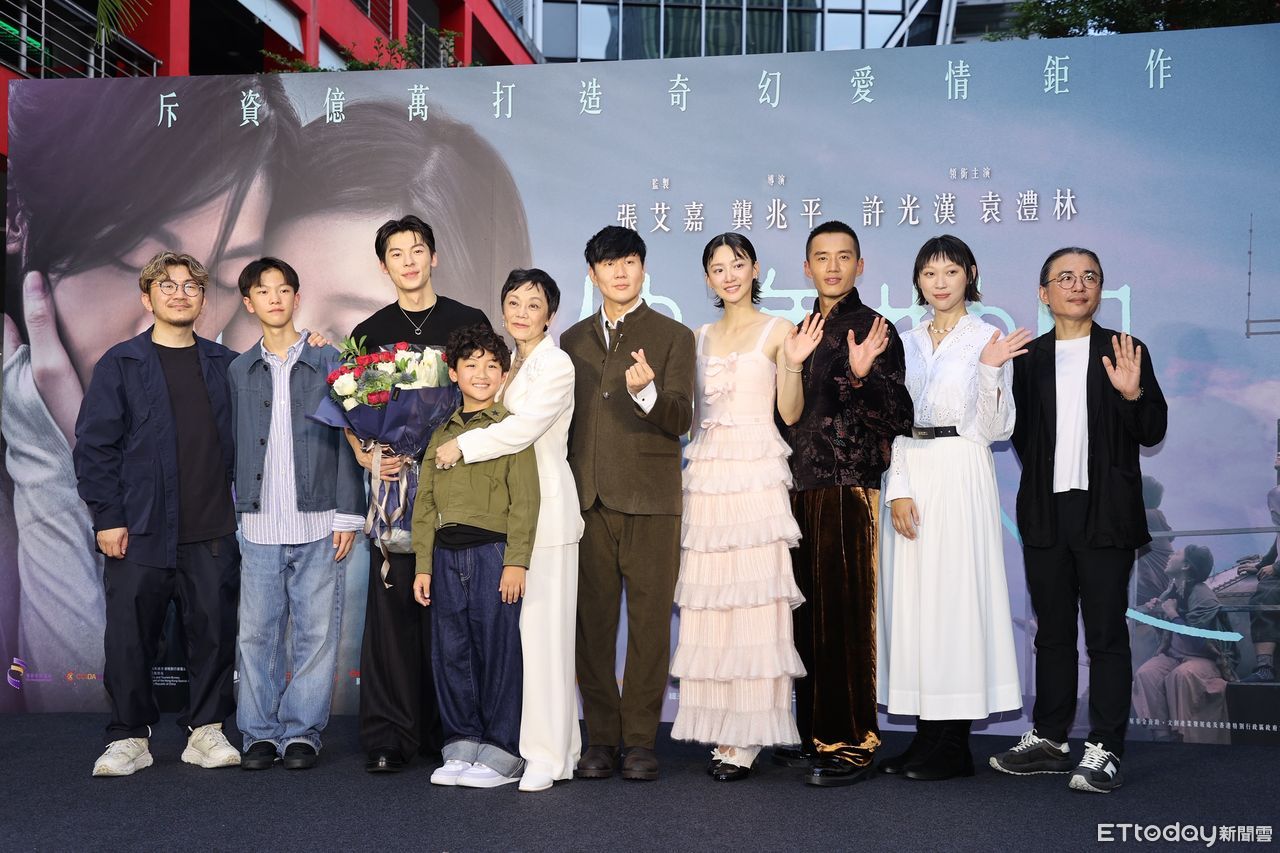 ▲《他年她日》首映會,林俊傑驚喜現身獻花,許光漢和張艾嘉都嚇傻。(圖/記者徐文彬攝)