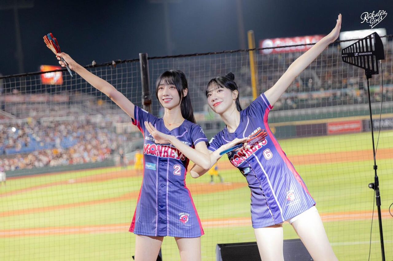 ▲嘎琳(左)於9月28日迎來啦啦隊生涯的最後一場應援。(翻攝自樂天女孩粉專)