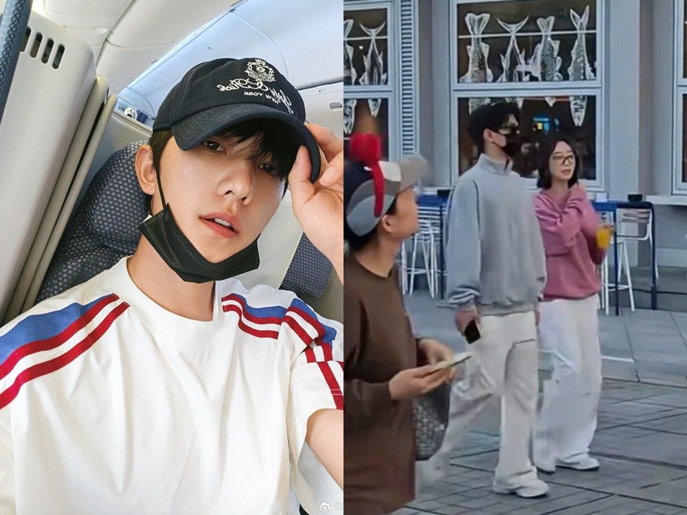 ▲楊洋戴墨鏡口罩仍被認出,身邊是《紅樓夢》飾演林黛玉。(圖/翻攝自微博)