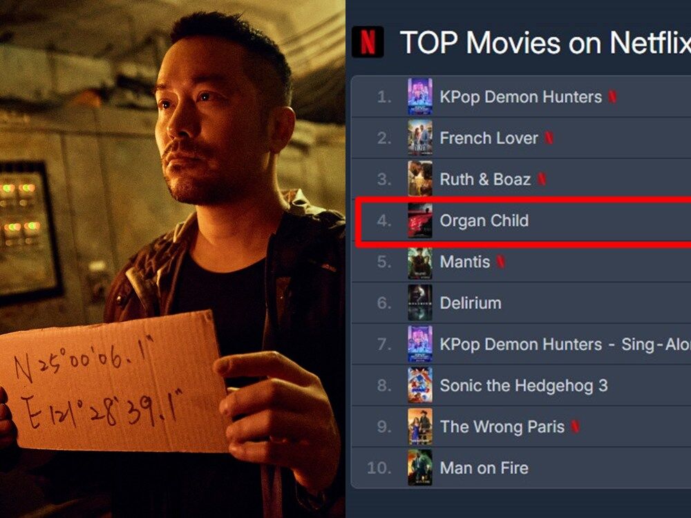 台灣2025年上映電影《器子》(Organ Child)在國際串流發威!該片由張孝全主演,描述遭誣陷入獄的男主角,在出獄後展開以暴制暴的復仇行動,故事牽涉活摘器官的犯罪集團,電影於9月30日上線Netflix,目前登上全球電影熱門榜第4,成為黑馬之作!