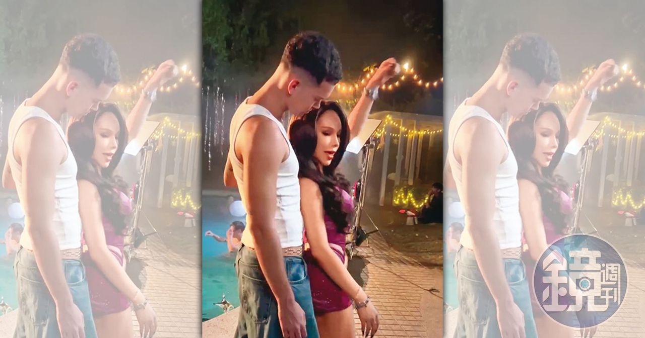 ▲小A辣(右)找來巴西男模(左),在泳池豪宅拍攝MV。(圖/鏡週刊提供)