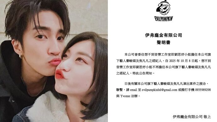 焦凡凡與婁峻碩8日無預警在社群網站宣布換經紀人,讓大批粉絲為之震驚。事件經過一晚發酵,隔天被問到背後原因時,她也老實回答了,「如果沒有共識或信任破裂就好聚好散。」