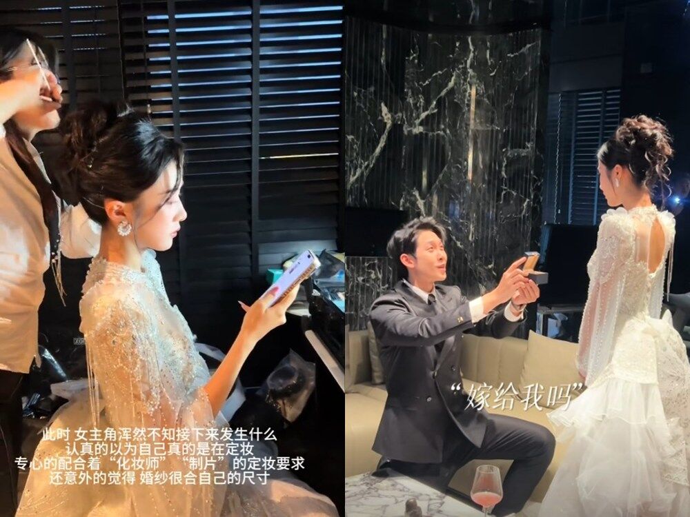 ▲短劇女神林琦婷以為新劇拍定裝照,其實是男友在規劃求婚。(圖/翻攝自微博)