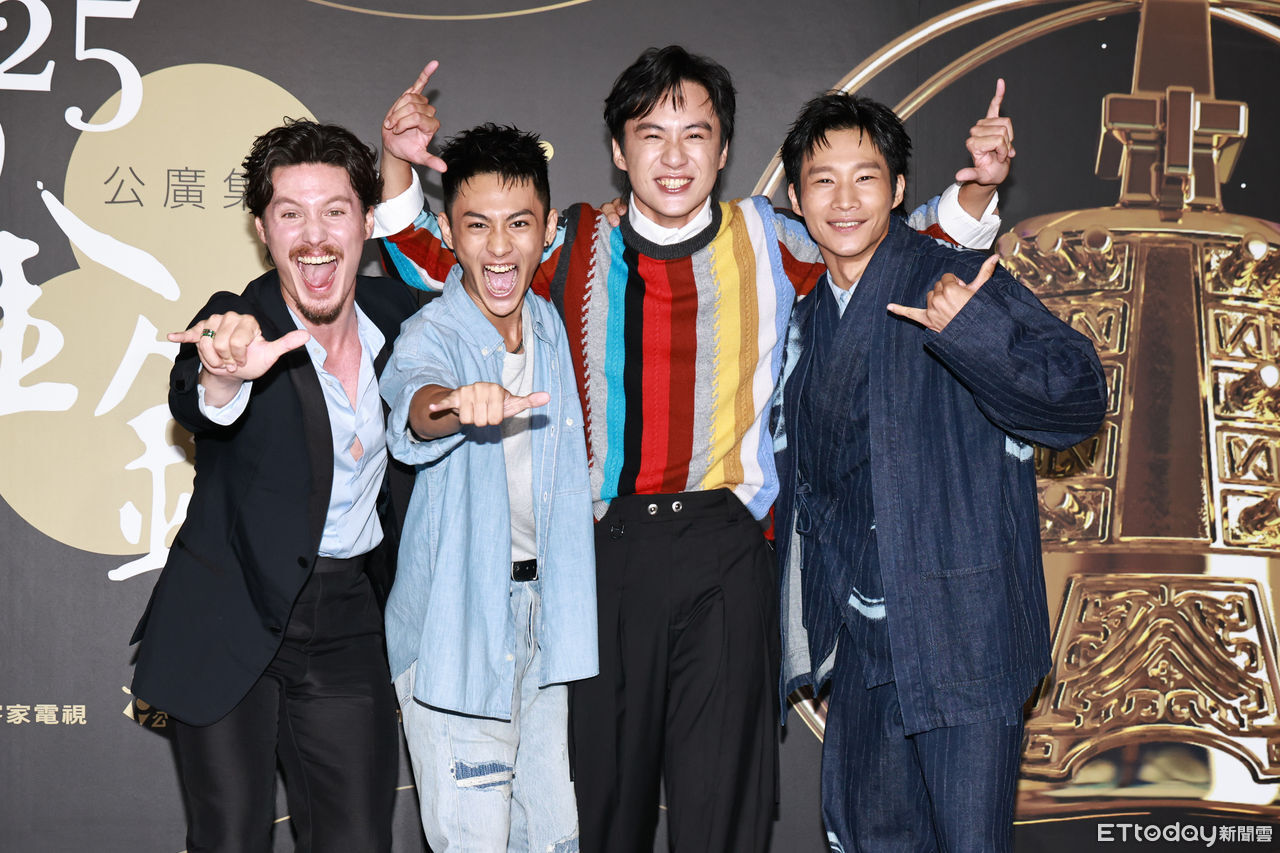 ▲周厚安(左起)、朱宥丞、吳翰林、黃冠智出席公廣集團金鐘入圍茶會 。(圖/記者黃克翔攝)
