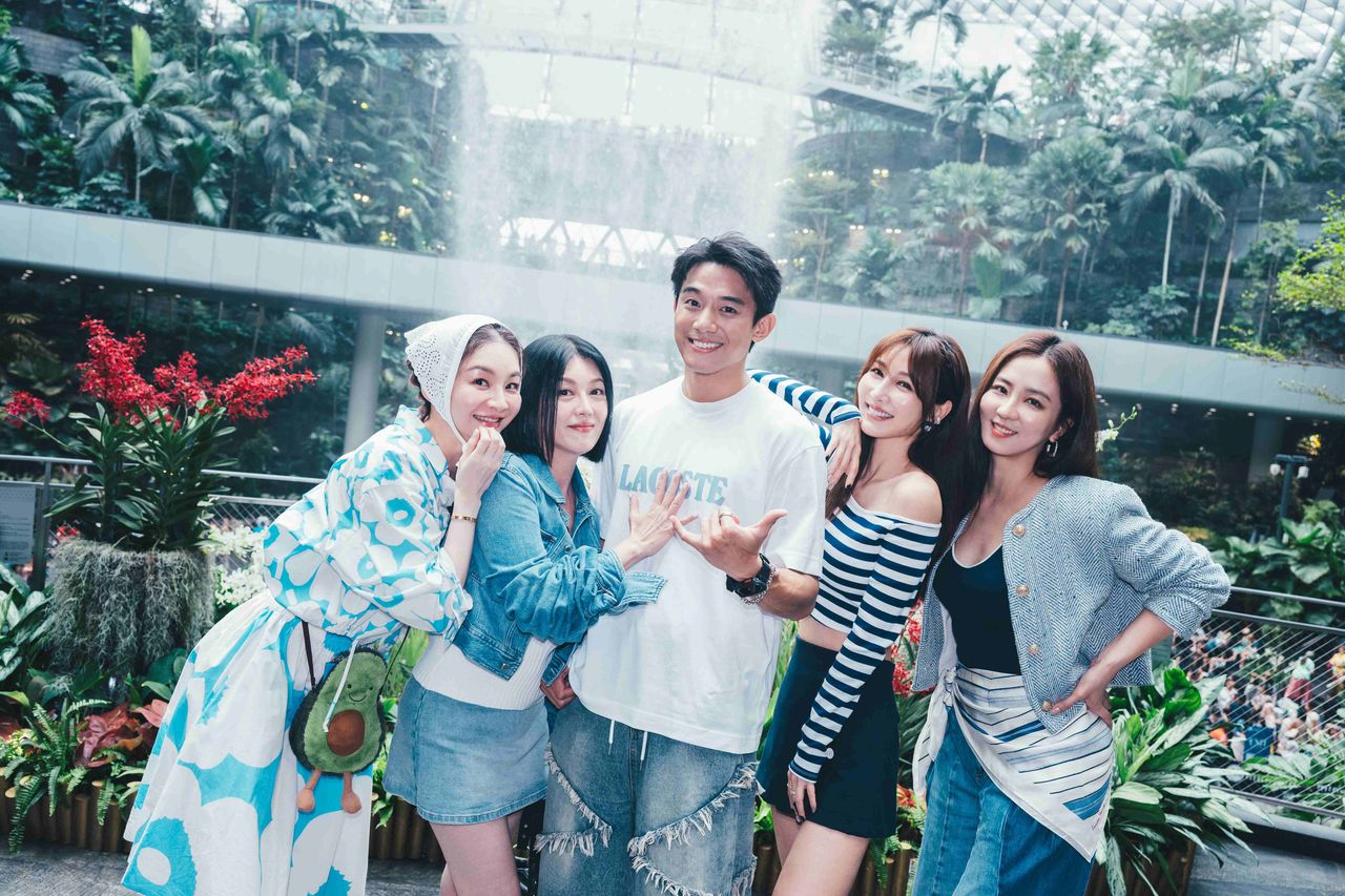 ▲花花(左起)、苗可麗、初孟軒、曾莞婷、周曉涵,出發前往新加坡旅遊。(圖/東森綜合台提供)