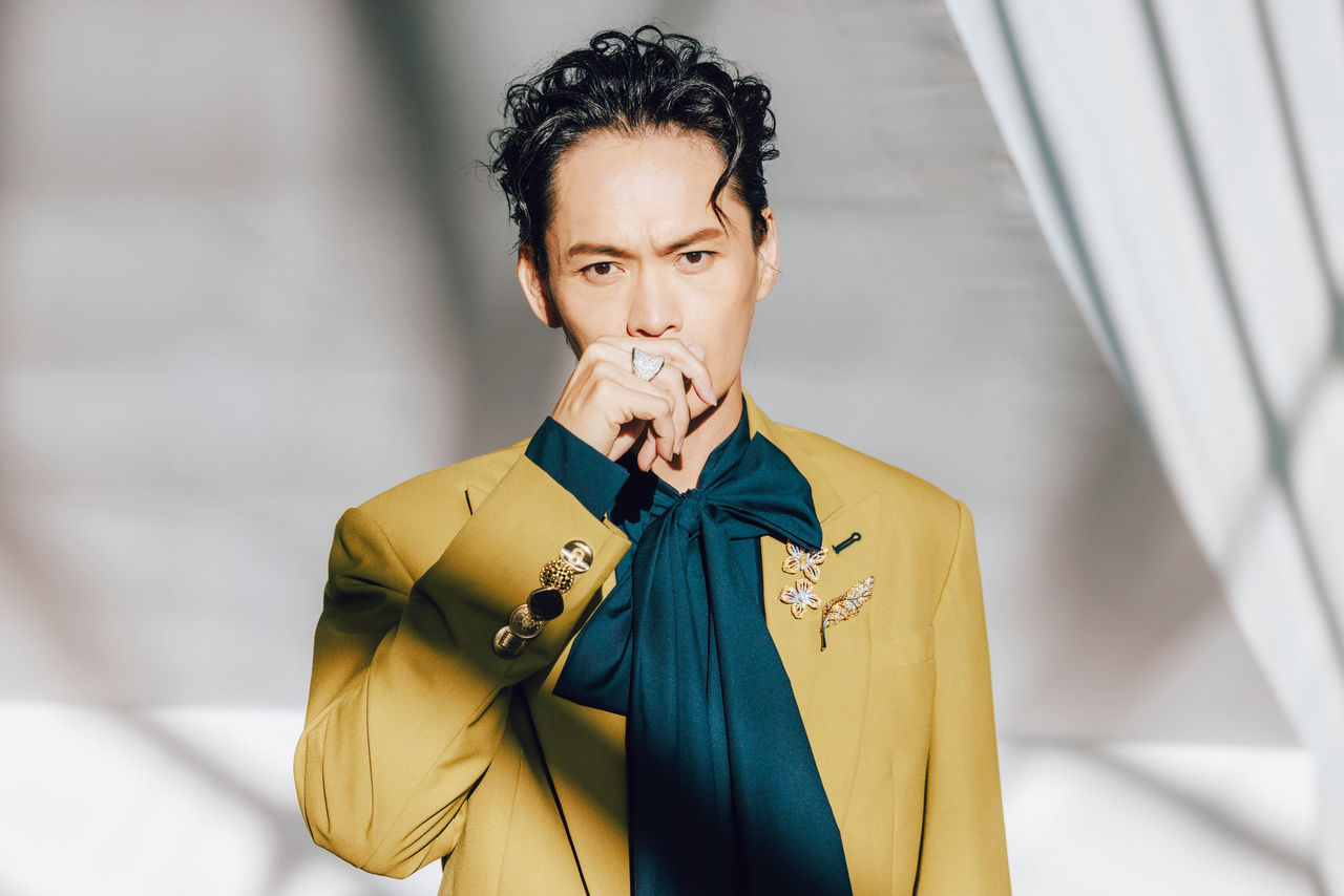 今晚紅毯主持由造型師唐希璇為他量身打造,特別將外套腰身裁短,搭配高腰復古風格的大寬褲,完美展現他47吋的大長腿比例,氣場全開。斐儷珠寶則精心挑選葉子造型胸針與蝴蝶別針搭配,象徵「最強綠葉」即將在各大影視舞台展露頭角、閃耀鑲金。