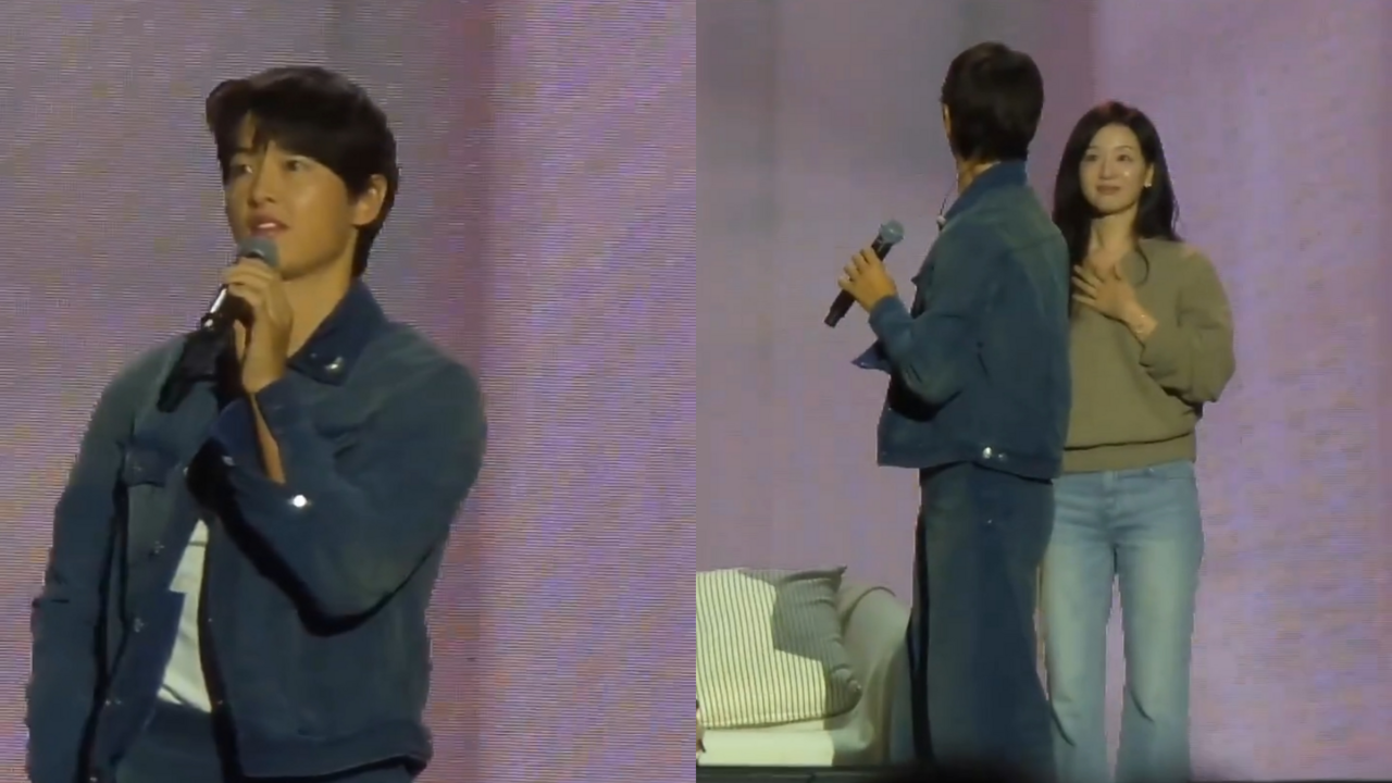 ▲▼見面會突冒女聲,宋仲基以為是見面會導演組麥克風出問題,結果竟是金智媛親自到場。(圖/翻攝自X)