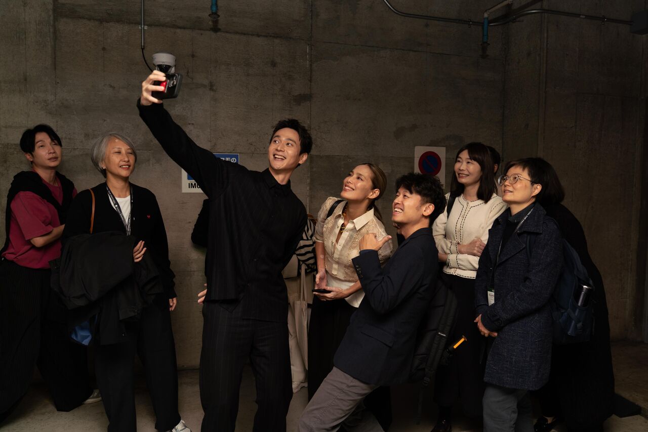 ▲《丟包阿公到我家》劉冠廷、安潔兒艾奎諾、導演唐福睿,在後台開自拍。(圖/鏡文學、客新聞提供)