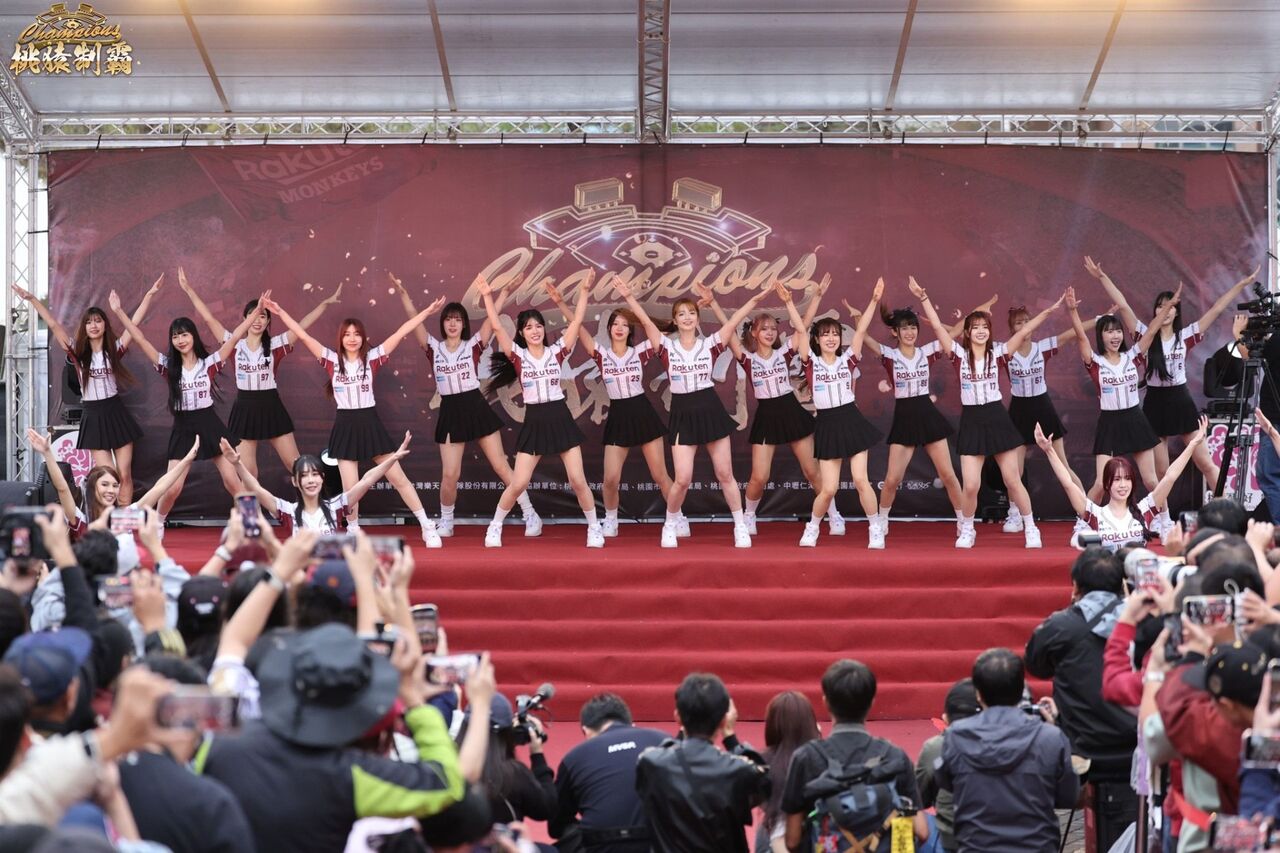 這次封王遊行自桃園棒球場出發,沿途十公里一路行進至市政府站,歷時將近兩個半小時。許多粉絲揮舞應援巾與樂天周邊,熱情地向車上的球員與女孩打招呼。抵達市府後,樂天女孩們登台演出〈勇敢猛進〉與〈桃猿最強〉,現場氣氛瞬間沸騰,球迷隨著節奏高喊應援,重溫奪冠那刻的感動。