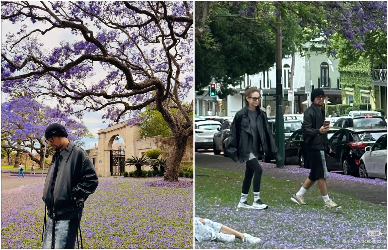 一名網友日前在小紅書發文,透露在雪梨Paddington遇到周杰倫夫妻。從照片中可見,周杰倫身穿黑色外套、毛帽與墨鏡,昆凌則穿灰色長上衣、黑色外套與球鞋。正值藍花楹(Jacaranda)盛開季節,整條街鋪滿紫色花瓣,周杰倫夫妻漫步在滿地紫花的道路上,浪漫又唯美。周杰倫還拿起手上的橘色iPhone17 Pro Max幫昆凌拍照。