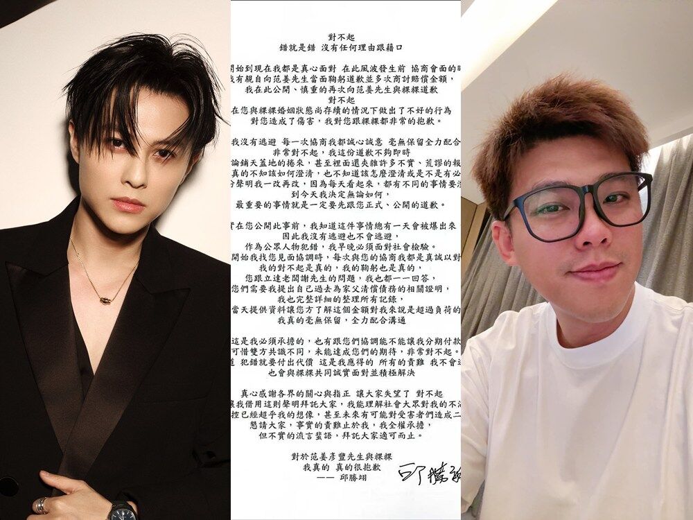 王子昨日(4)在第二次道歉聲明中承認「錯就是錯,沒有任何理由跟藉口」,並向粿粿的丈夫范姜彥豐致歉,更坦承自己早就知道「總有一天一定會被爆出來」,強調「我應得的所有的責難我不會逃避」,也願「全面承擔」所有實質上的責難。