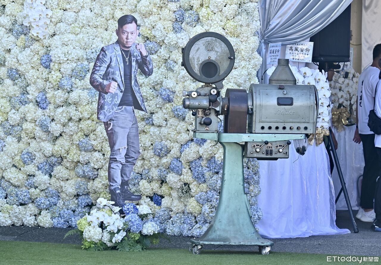▲顏正國告別式現場以「人生殺青宴」為主題,現場以白色為主題。(圖/記者李毓康攝)
