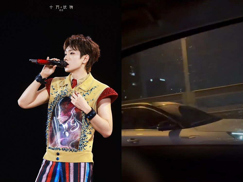 ▲車子逼近汪蘇瀧,後座拉下車窗有人欲偷拍。(圖/翻攝自微博)