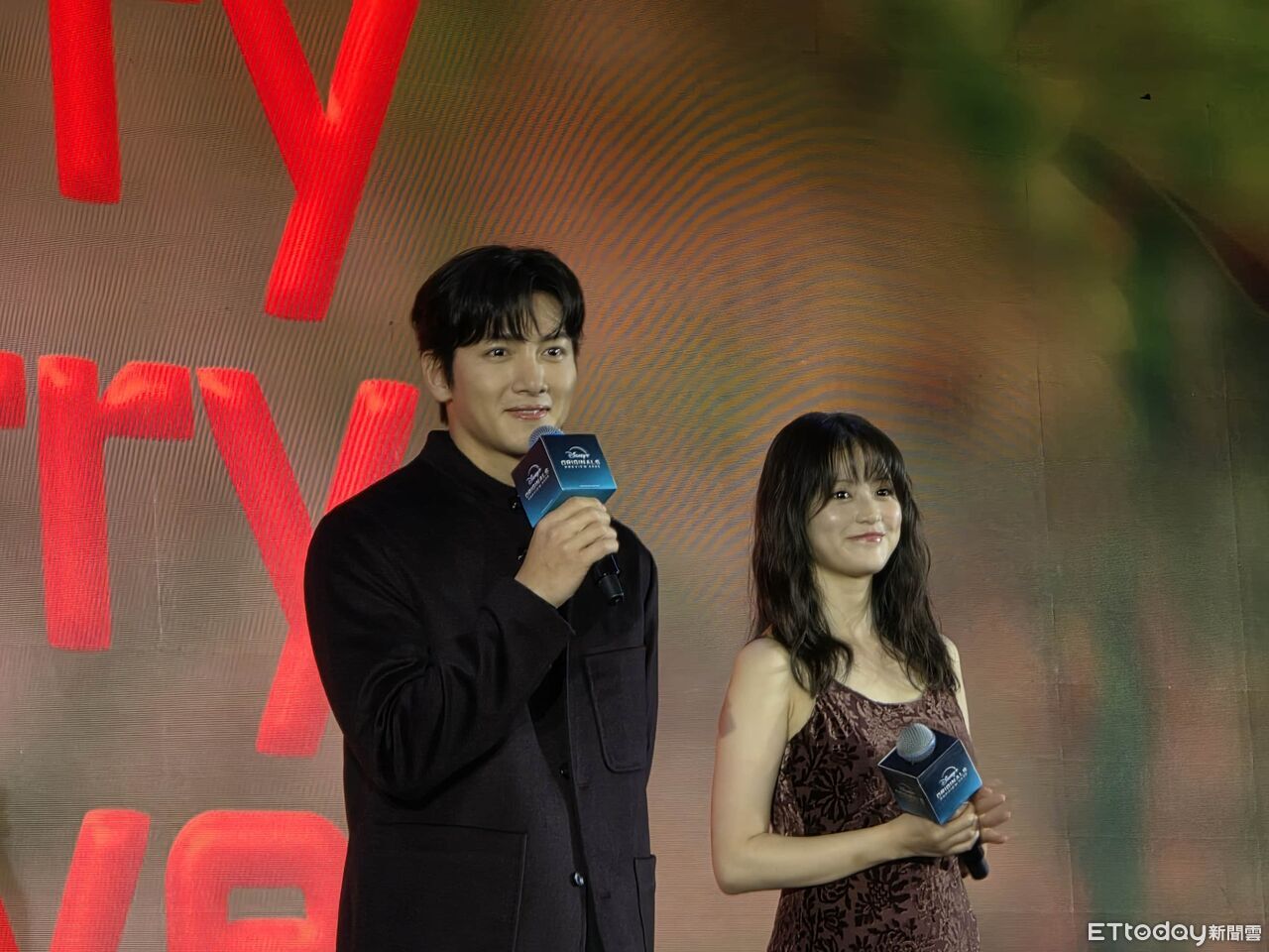 Disney+年度原創內容發佈會今年移師來到香港迪士尼,13日盛大舉辦記者會,男神池昌旭、今田美櫻驚喜現身,首度公開最新主演的日韓跨國製作戲劇《Merry Berry Love》,兩人默契十足且相當有火花,今田美櫻府現身就用深情的表情看著對方,互動非常有愛。