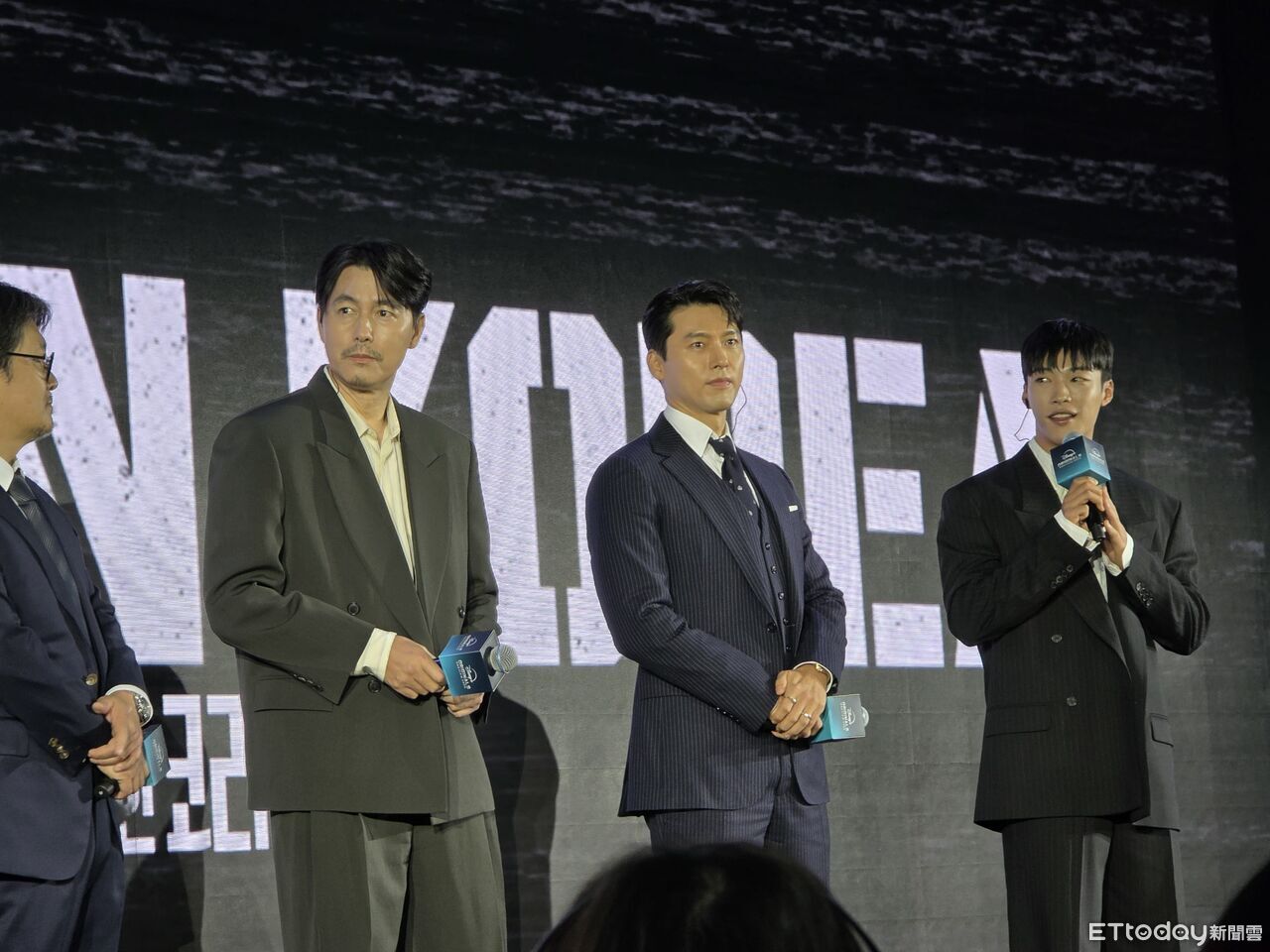 Disney+年度原創內容發佈會今年移師來到香港迪士尼,13日盛大舉辦記者會,砸下重資製作的《韓國製造》由三位男神玄彬、鄭雨盛、禹棹奐主演,3位主角穿著帥氣正裝現身,台下熱情的尖叫聲更嚇到玄彬,他驚喜回應「哇嗚」,給足熱情反應。