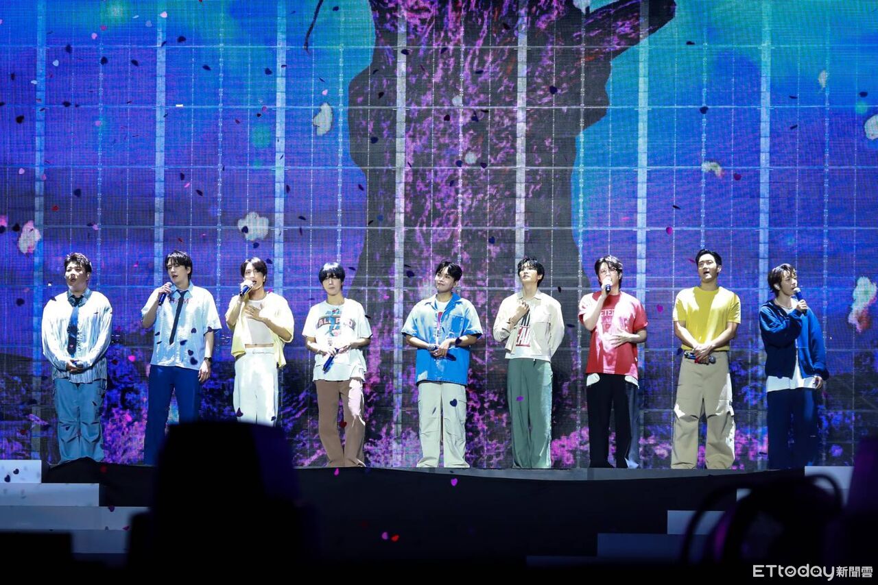 韓流帝王SUPER JUNIOR迎來20週年,他們15日在臺北大巨蛋揭開「SUPER JUNIOR 20th Anniversary TOUR 」第二天演出,現場吸引近3萬名粉絲到場。歌迷在他們唱到〈From U〉後,在場內舉起彩虹應援,9人備受感動以外,東海更是在唱到〈至少還有你〉時哭出來,場面超感人。