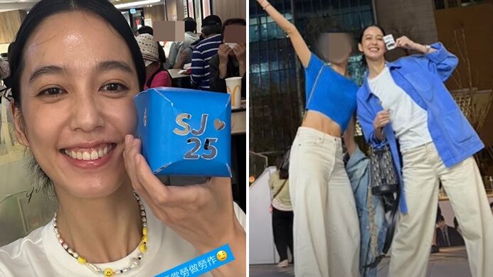 有趣的是,陳庭妮和同行友人在進場之前,先在附近的麥當勞做應援小物。只見她拿著一個藍色紙盒,上面印著「SJ 25」的字樣,還加上了小愛心,「兩位盡力了的少女~羨慕美術很強的人。」