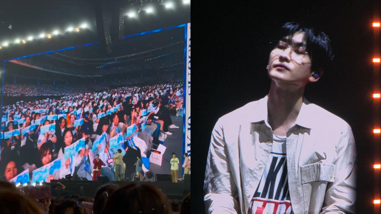 結束彩虹應援後,利特感性致謝:「因為我們不知道何時還會回來這裡,成員們用盡全力演出,覺得各位也有享受現在這個時刻對嗎?」只是,此時觀眾席默默在忙碌準備下個應援,於是圭賢抓到機會打破感動,笑問觀眾「你們已經準備好了嗎」,東海喊著「隊長,準備好了嗎?1、2、3!」觀眾感動舉起手幅「從1到20陪著你們歡笑、痛哭」,接著翻面「快點哭嗚嗚嗚」。