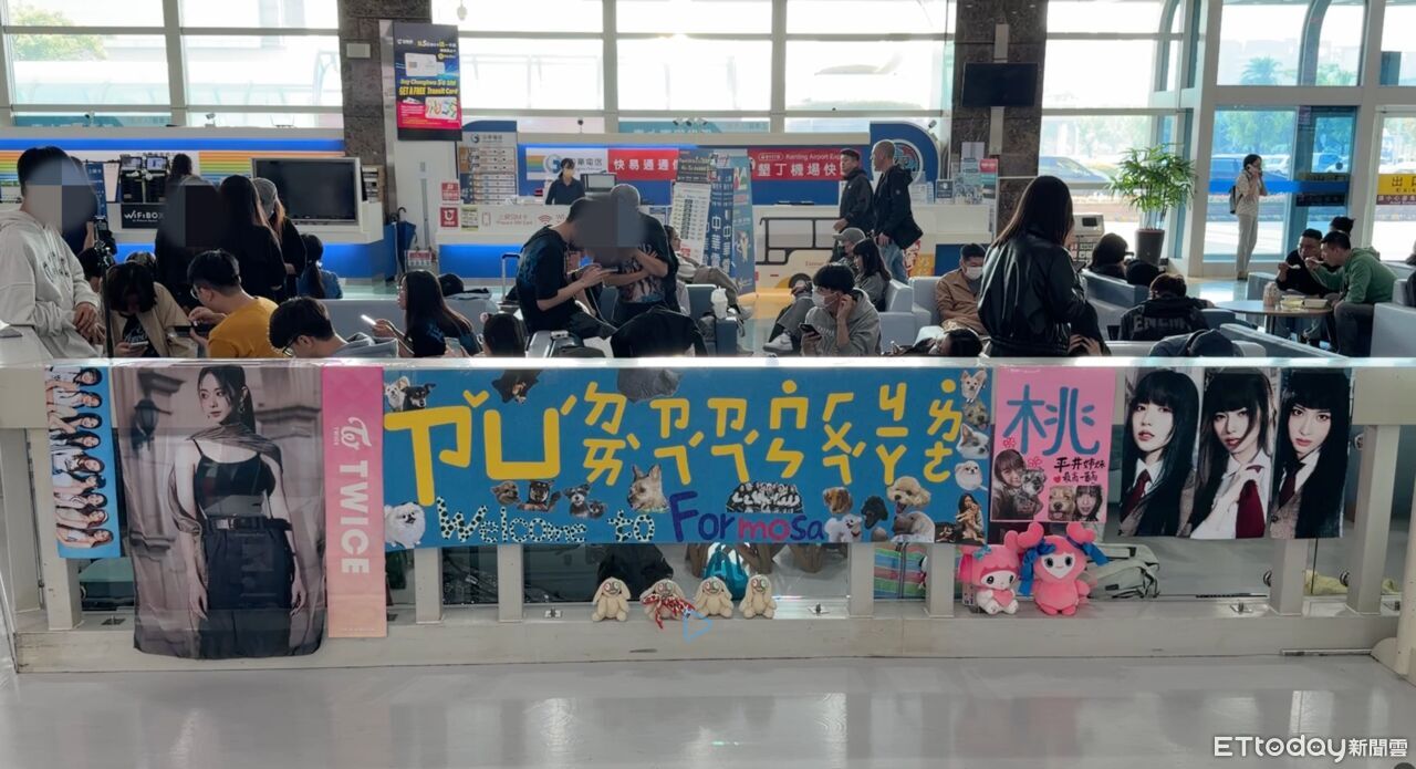 TWICE此趟分成兩趟來台,粉絲從凌晨12點就在小港機場外過夜,現場也有歌迷是清晨4點來,機場一開門就入內佔位,一位陳小姐做了精美橫幅,並用注音寫下暗號:「子瑜帶賊賊們回家了(ㄗ˙ㄩˊㄉㄞˋㄗㄟˊㄗㄟˊㄇㄣ˙ㄏㄨㄟˊㄐㄧㄚㄌㄜ˙)。」橫幅下方還有濃濃台灣味,她笑喊:「還有台灣人最愛的諧音哏,welcome to for Mosa(歡迎來到福爾摩沙),取自Momo跟Sana。」